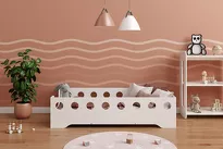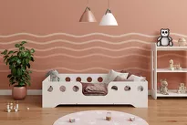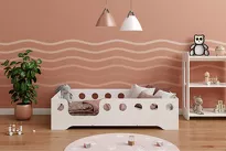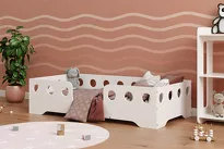 Bed frame - solid construction, smooth and rounded edges, barrier.
